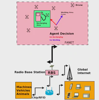 Unmanned aerial vehicles, also called drones, can be used in critical applications, such as disaster recovery support or precision agriculture. However, their autonomy is limited due to their small size and capacity. New forms of energy can increase the autonomy of drones and improve the coordination of their processes, both work and decision-making for recharging their energy sources. This work aims to develop coordination proposals for the recharging process of these devices, aiming to increase their autonomy. In this research, drones are considered Internet of Things devices, operating together as a swarm. Drones must decide whether to recharge their batteries at a recharging station. This work presents two main results: first, it identifies three gaps in the literature from a systematic review on coordinating drone recharging in the context of applications in agriculture and disasters. The second result was developing and documenting an agent-based simulation (ABM) model in NetLogo software, in which 12,000 simulation runs were performed. In this model, a swarm of drones is considered to be acting autonomously and without communication with each other when deciding whether to recharge. For this model, two decision-making policies were proposed, called Baseline and a game theory-based ChargerThreshold policy, which were developed and tested, in addition to three indicators to evaluate robustness and efficiency in different situations. The literature review showed few practical studies in the context of recharging drone swarms. The development of a simulation base, such as this work, and the creation of performance indicators to evaluate simulation scenarios are important contributions to this research area, as they serve as a basis for future developments. The results highlighted three gap types in the literature and showed that both policies work well in situations with lower energy demand. However, in simulation scenarios with higher battery consumption rates, the game theory-based policy proved to be more efficient, allowing the drones to perform the expected work autonomously. The simulation results highlight the potential of the proposed decision-making strategies to optimize drone coordination in real-world scenarios, showing the potential for using this approach in other applications, such as the electric vehicle recharging process.
